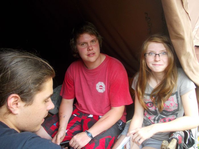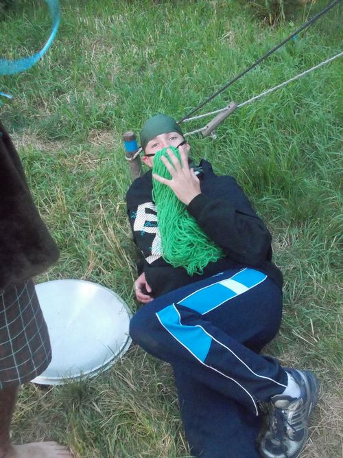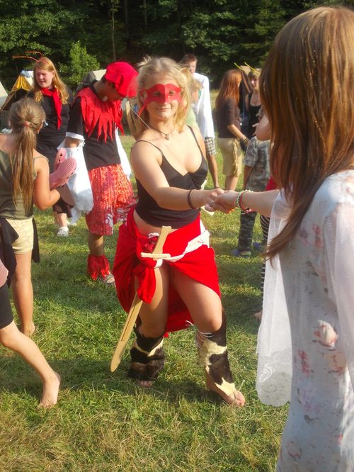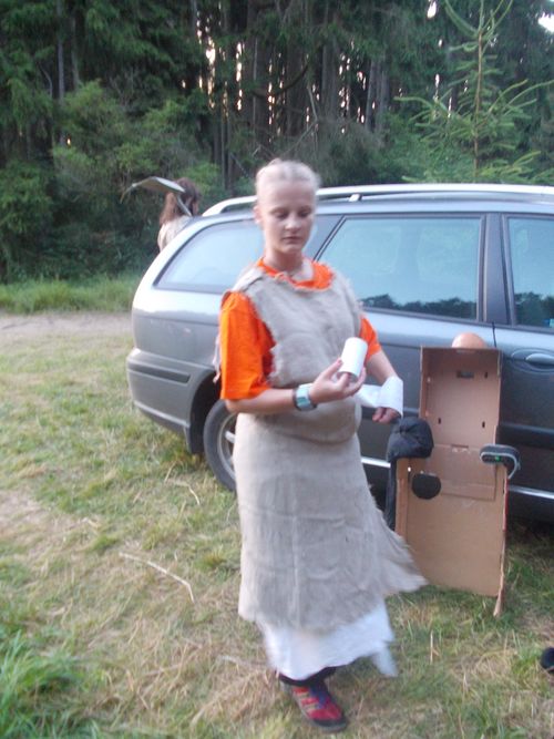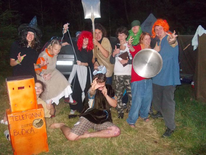 Takže to je obecně a teď k táboru!! Nebyla jsem tam jako účástník, ale volná instruktorka (praktikantka). To znamená, že jsem nebyla celý den u oddílu, ale jen pomáhala, když bylo třeba. Např. když se dělaly pohádkové postavy pro děti při etapách, byla jsem u různých soutěží a tak. Měla jsem tam jet ještě s jednou kamarádkou, jenže ta dostala angínu a celý týden musela ležet doma na antibiotikách, takže jsem tam v podstatě jela sama. Sice jsem ty ostatní volné instruktory znala z "předtáboráku", ale tam jsem se s nimi moc nebavila. Ale bála jsem se zbytečně. Oni mě mezi sebe vzali, jako by jsme se znali už nějaký ten pátek. A trošku mě i zkazili, ale podle jejich mínění to ještě nic není. "Naučili" mě otevírat pivo lžící :D ale nebojte, já to pivo nepila, já jsem slušná. A divíte se proč je to naučili v úvozovkách? To je proto, že když mi s tím jeden kluk pomáhal, tak mi to šlo, ale když jsem to pivo otevírala sama, tak jsem si odřela klouby, protože jsem neměla ten správný švih. Taky mi tam 2 kluci pomalovali tenisku...nestihla jsem to vyfotit dřív něž mi z toho půlka barev vybledla, kvůli tomu, že jsem tam běhala v mokré trávě. Řekněmě, že toto je výcuc všeho hlavního a publikovatelného :D :D teď vám sem dám pár fotek, ale jsou bohužel nekvalitní :/ časem, až budou třeba zveřejněné na stránkách DDM, tak vám sem dám odkaz, ale ty moje jsou strašné ;)